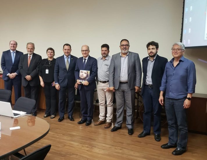 O presidente do Sincor-SP, Alexandre Camillo, e representantes do Sindseg SP se reuniram com o secretário executivo Haroldo ...